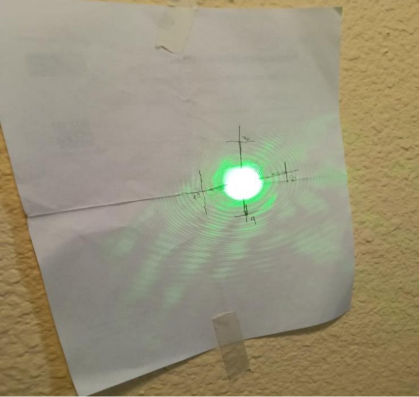 Es un poco lioso conseguir que el puntero incida en un lugar próximo al borde del espejo primario (Figura 6) y, a la vez, su reflejo salga en una dirección tal que incida en la pared del fondo en un lugar cómodo para colocar una