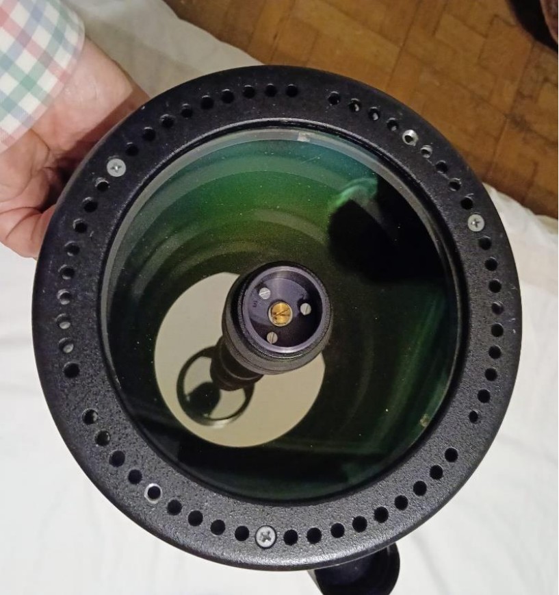 No es necesario desmontar el menisco ni el espejo secundario en ningún momento del proceso; creo que su presencia no perjudica la precisión del método. El menisco provoca algunos reflejos secundarios del puntero;