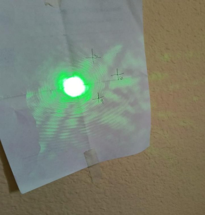 Una vez conseguido esto (Figura 7), se marca con un lápiz sobre la hoja de papel el lugar en el que incide el rayo del puntero y se anota la posición del tubo sobre el bastidor.